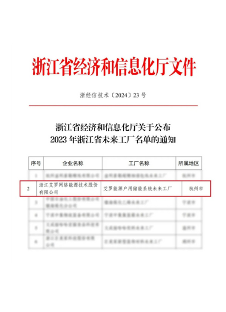 “ag凯发能源户用储能系统未来工厂”上榜浙江省未来工厂